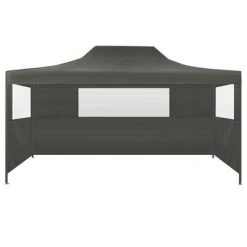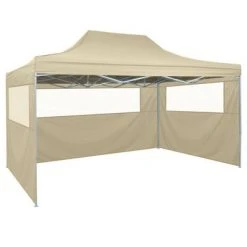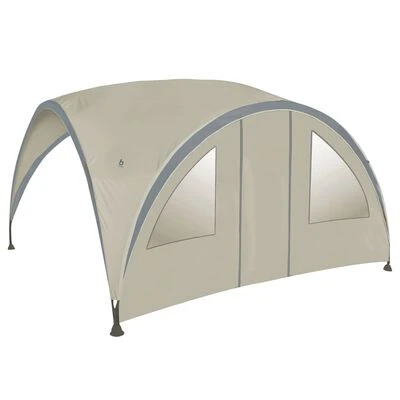 La paroi latérale est en polyester avec un revêtement en PVC, ce qui lui permet d’être considérablement imperméable et ignifuge. Le vent et la pluie sont tenus à l’écart du pavillon et, de plus, cela ajoute également un peu d’intimité. Cette paroi latérale possède des fenêtres et une porte qui permettent de l’attacher facilement à l’aide des attaches à boucles et à crochets fournies.