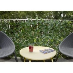 Ce treillis de jardin réglable en bois de saule naturel avec feuilles de laurier en plastique de la marque Nature est parfait pour décorer un mur ou pour créer une protection de vue sur un balcon.