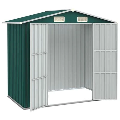 Cette maison de stockage est équipée d’orifices d’aération, conçus comme des volets pour tenir la pluie au dehors. Elle assure également la ventilation tout le temps pour réduire l’accumulation d’humidité et d’odeurs dans la maison. Ce hangar de stockage d’extérieur en acier galvanisé nécessite un entretien minimal et est très durable. Les portes à double ouverture à l’avant permettent d’entrer et de sortir facilement. L’eau de pluie s’écoule automatiquement du toit grâce à sa conception inclinée.