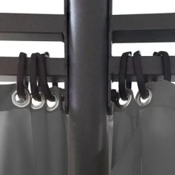 Fabriqué en polyester de haute qualité, ce belvédère est hydrofuge et résistant à la saleté et aux UV. La structure en acier durable enduit de poudre rend le belvédère fort et très durable. Il dispose d’un design élégant à double ventilation qui permet une meilleure ventilation. Les rideaux et les sangles d’attache en polyester, faciles à nettoyer, s’unissent pour offrir une intimité supplémentaire.
