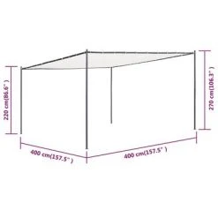 Le toit résistant aux rayons UV avec revêtement PA ainsi que la structure en acier enduit de poudre rendent l’auvent de jardin durable et parfait pour une utilisation à l’extérieur. De plus, il est facile de fixer le toit de la tente à votre structure de belvédère de jardin en raison des attaches à crochets et à boucles incluses.