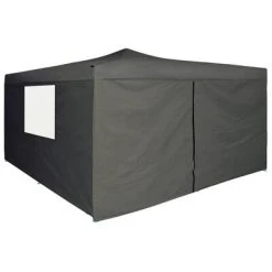 Le belvédère d’extérieur est facile à assembler. La livraison comprend 1 belvédère pliable, 4 cordes de haubanage, 8 piquets de sol et 4 parois latérales. Veuillez noter que nous recommandons de traiter la tente abri avec un spray imperméable si le belvédère est soumis à de fortes précipitations. REMARQUE : Ce produit ne doit JAMAIS être utilisé par mauvais temps, comme vent fort, fortes pluies, neige, tempête, etc.