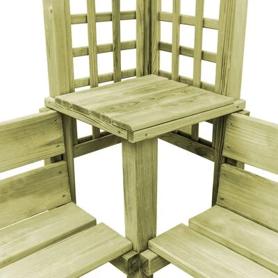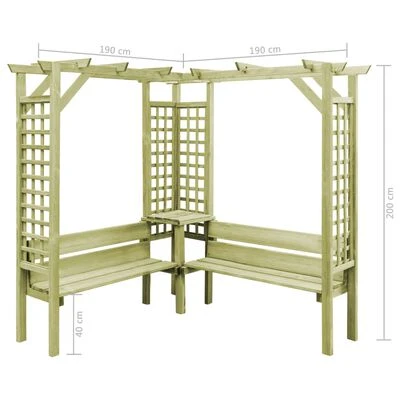 Fabriquée en pin imprégné vert de haute qualité, notre pergola de jardin est très solide, durable et résistante aux intempéries. La tonnelle de jardin constitue un lieu stable pour les rosiers et autres plantes grimpantes, et deviendra sans aucun doute le point central de votre jardin. Le banc intégré offre des sièges pour que vous puissiez admirer votre magnifique jardin. Notre pergola de jardin est facile à assembler.
