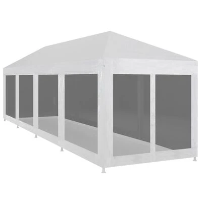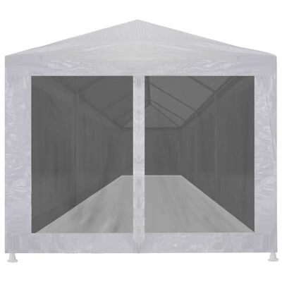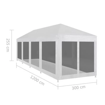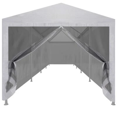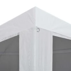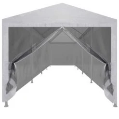 Fabriquée en acier enduit de poudre, cette tente de réception est extrêmement durable. Le revêtement de toiture est en polyéthylène de haute qualité, ce qui le rend résistant à l’eau et aux UV. La tente dispose de dix parois latérales en maille qui vous protègent des insectes nuisibles. Les deux des parois latérales ont une entrée à fermeture éclair pour un accès facile. La tente de réception est facile à installer avec les accessoires de montage inclus.