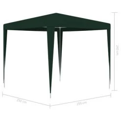 La tente de réception est fabriquée en polyéthylène résistant aux UV et à l’eau et est donc parfaitement adaptée à une utilisation en plein air. Le cadre est fabriqué en acier résistant à la rouille, ce qui rend la tente stable et durable. Le belvédère de jardin est facile à assembler.