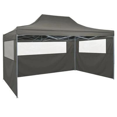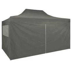 Fabriquée en acier enduit de poudre, cette tente de réception escamotable est extrêmement durable. La couverture de toit est faite de tissu oxford avec un revêtement de PVC, ce qui la rend imperméable et résistante aux UV. La tente a quatre parois latérales, dont l’une avec une entrée à fermeture éclair pour un accès facile. La tente de réception est facile à installer avec les cordes de fixation et les piquets au sol inclus.