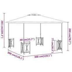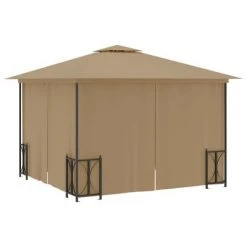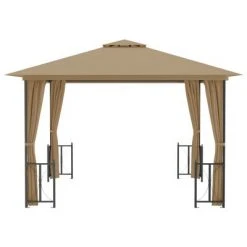 - Matériau haut de gamme : le belvédère de jardin est construit avec un cadre en acier enduit de poudre. Il est donc très robuste et durable. Le toit est fait de 100 % polyester avec revêtement PA, qui est résistant à l’eau et peut bloquer les rayons les plus nocifs.