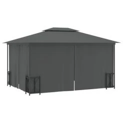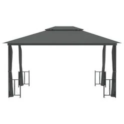 - Matériau haut de gamme : le belvédère de jardin est construit avec un cadre en acier enduit de poudre. Il est donc très robuste et durable. Le toit est fait de 100 % polyester avec revêtement PA, qui est résistant à l’eau et peut bloquer les rayons les plus nocifs.