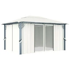 VidaXL Tonnelle avec rideau 400×300 cm Crème Aluminium
