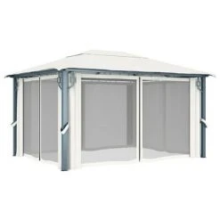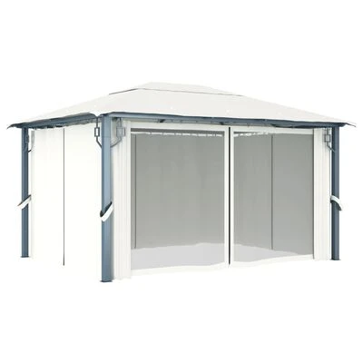 VidaXL Tonnelle avec rideau et lumières LED 4×3 m Crème Aluminium