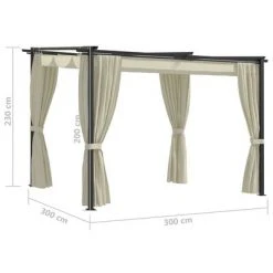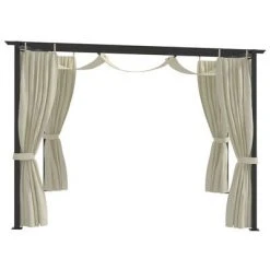 VidaXL Tonnelle avec rideaux 3×3 m Crème Acier